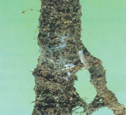◦ 짚, 전정지 같은 거친 유기물을 많이 넣거나 배수가 불량한 곳, 지나치게 건조한 토양에서 발생이 많음