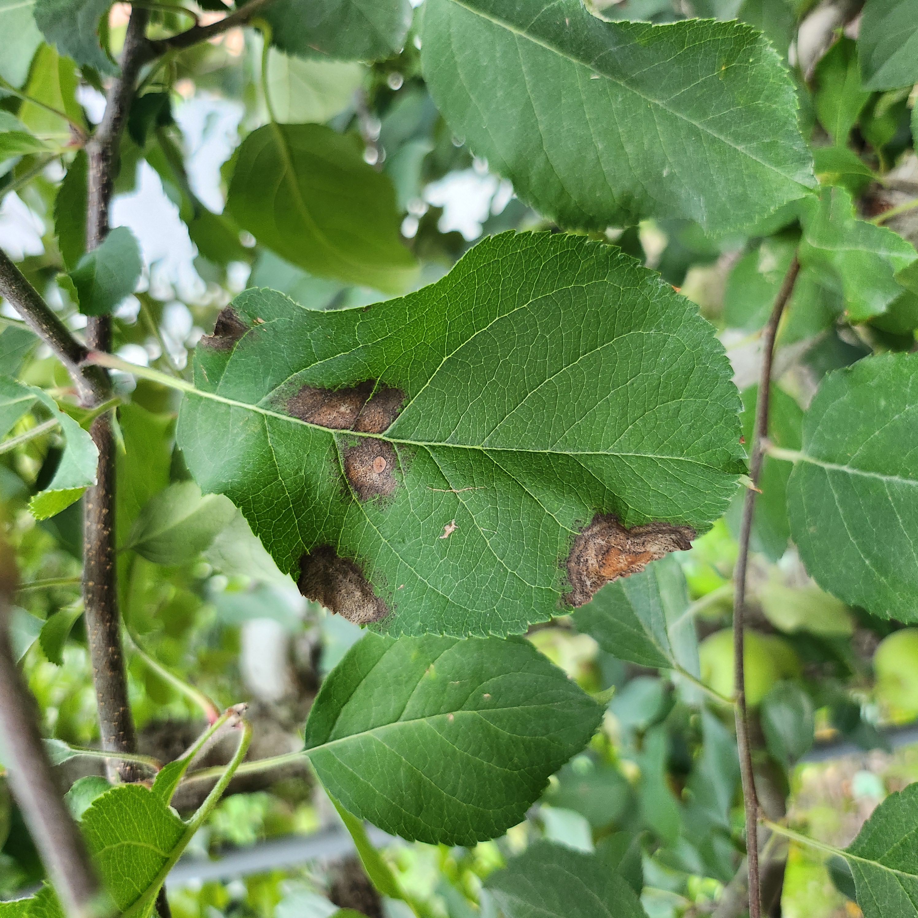 ◦ 품종에 따라 발병정도가 다르며, 여름에 고온다습하면 발생이 많고 질소비료의 과다로 인해 잎이 연약하고 배수와 통풍이 잘 되지 않는 과원에서 피해가 많음