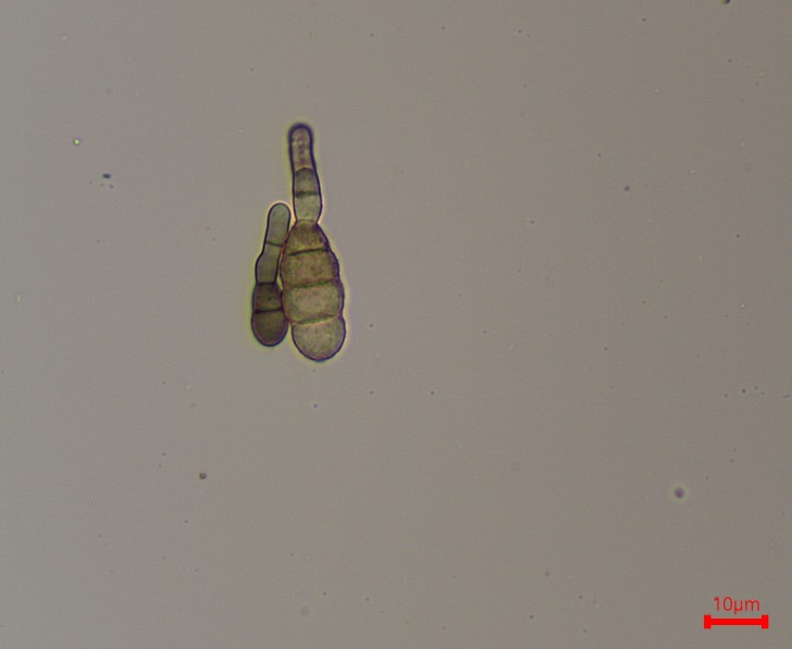 ◦ 불완전균에 속하며, 분생포자는 분생자경 위헤 보통 5~13개의 연쇄상으로 형성, 흑갈색, 곤봉형, 1~7개 횡경막과 1~5개 종격막, 크기 1.25~52.5× 6.3~15㎛, AM 독소를 생성함