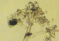 ◦ 불완전균에 속하며, 분생포자는 무색, 타원형 내지 난형, 단세포, 크기 6.5~ 18×4.5~10㎛, 균핵은 흑색, 부정형, 직경 3~6㎛ 임