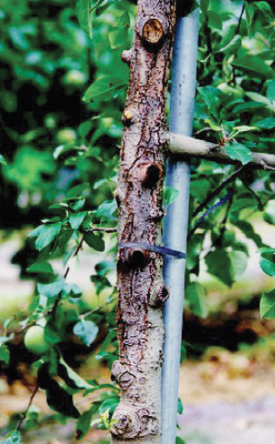 ◦ 햇빛이 잘 받는 부위에는 겨울철 온도 교차가 커 동해를 받을 위험이 높으므로 도포제를 바르면 효과가 크며, 잔가지의 이병지는 잘라 소각함