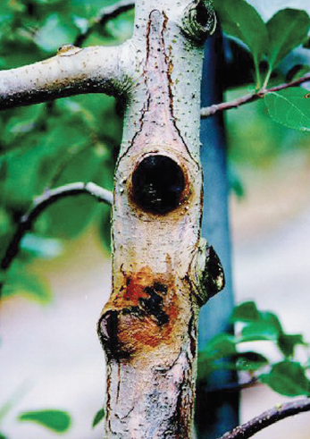 ◦ 분산된 병원균이 나무껍질 표면에 부착되어도 수세가 강건하면 발병되지 않으며, 수체 내 탄수화물이 적어져 내한성이 약해지고 수액의 유동이 불량해지면 동해나 한해의 발생이 많아져 발병의 좋은 조건이 됨