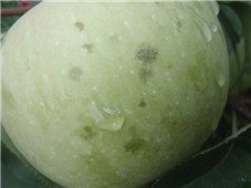 ◦ 과실 표면에 흑녹색 내지 흑색의 그을음 증상이 부정형으로 나타남