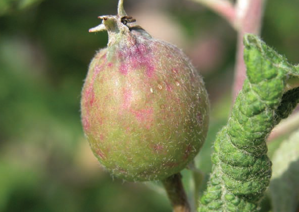 ◦ 밀도가 높을 경우 적과 전후 어린 과실에도 붉은 반점의 피해증상을 남김