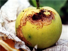◦ 봉지를 씌운 이후에는 과실줄기를 통하여 봉지 속으로 들어가 과실 표면을 얇게 갉아 먹어 피해부위는 갈색의 녹이 생기고 거칠어져 상품가치가 떨어짐