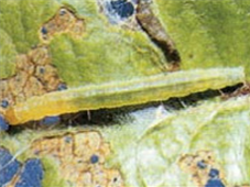 ◦ 봄에는 어린잎과 꽃을 묶고 그 속에 조직을 먹고 성숙함에 따라 신초로 이동하여 새로 난 잎을 묶어 은신처를 만들고 그 속에서 식해