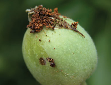 ◦ 과실에 산란하는 시기인 6월 이후 2~3회 적용약제를 살포하고 복숭아심식나방과 동시방제가 가능하며, 피해 과실은 따서 물에 담구어 유충을 죽임