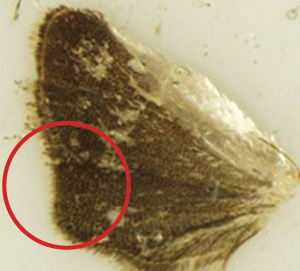 ◦ 복숭아순나방과 모양과 발생양상이 아주 유사하나 유충이 신초를 가해하지 않고 주로 과실만을 가해함