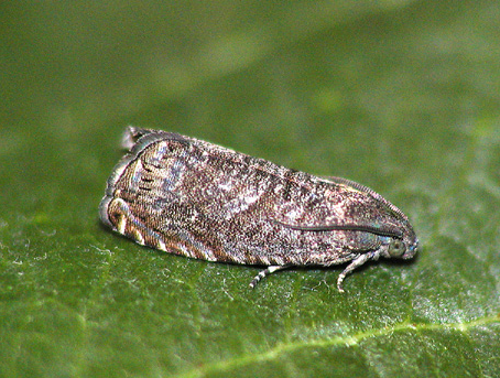 ◦ 성충의 몸길이는 7mm 전후이고 날개편길이는 12~15mm이며, 날개는 흑갈색으로 선상의 세세한 모양이 보이고 복숭아순나방보다 약간 대형임