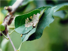 ◦ 여름세대는 신초 선단부 잎을 세로로 말고 그 속에서 가해하며, 과실 표면을 얕게 갉아 먹어 상품성을 떨어뜨림