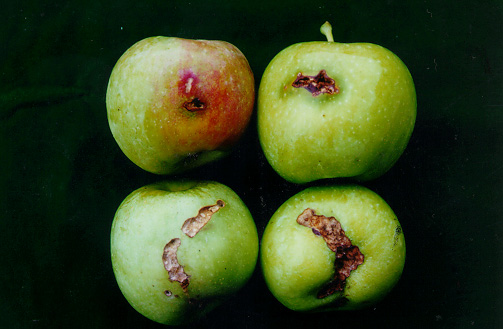 ◦ 월동한 어린 유충이 봄철 사과나무의 발아기에 눈으로 파고 들어가 가해하고 꽃과 화총을 뚫어서 식해함