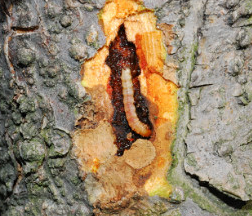 ◦ 사과나무 지제부 줄기의 형성층을 유충이 가해하여 수세를 약화시키고 피해가 심한 경우 나무를 고사시킴