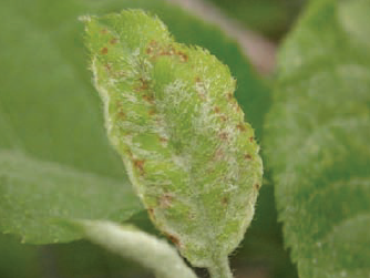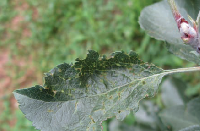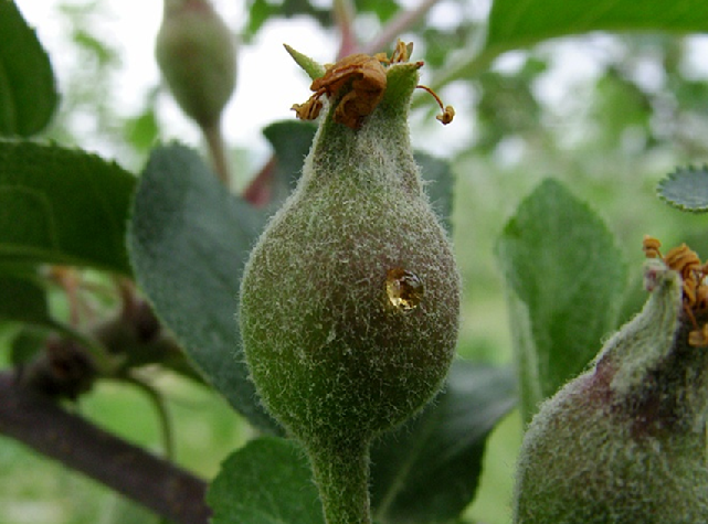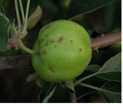 ◦ 어린 과일을 가해하여 검은색 반점을 남기는데 과일이 자라면서 표면이 거칠어져 언뜻 보기에는 동녹 증상으로 보임