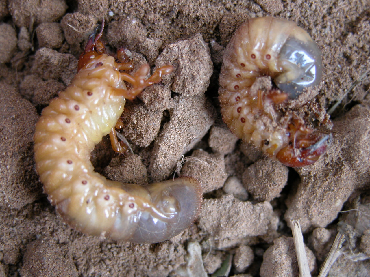 ◦ 야간에 교미한 성충은 땅속에 알을 낱개로 산란하고 8월경 부화한 유충은 노숙유충으로 월동하고 다음해 5월까지 발육한 후 6월~7월 중순경 지표 근처에 흙집을 짓고 번데기가 됨