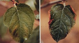 ◦ 홍옥, 골든데리셔스, 인도와 같은 품종에서는 엽맥간 황화현상이 나타나고 후지에서는 황변현상이 나타나지 않고 바로 엽맥간 흑갈색의 변색부가 나타남