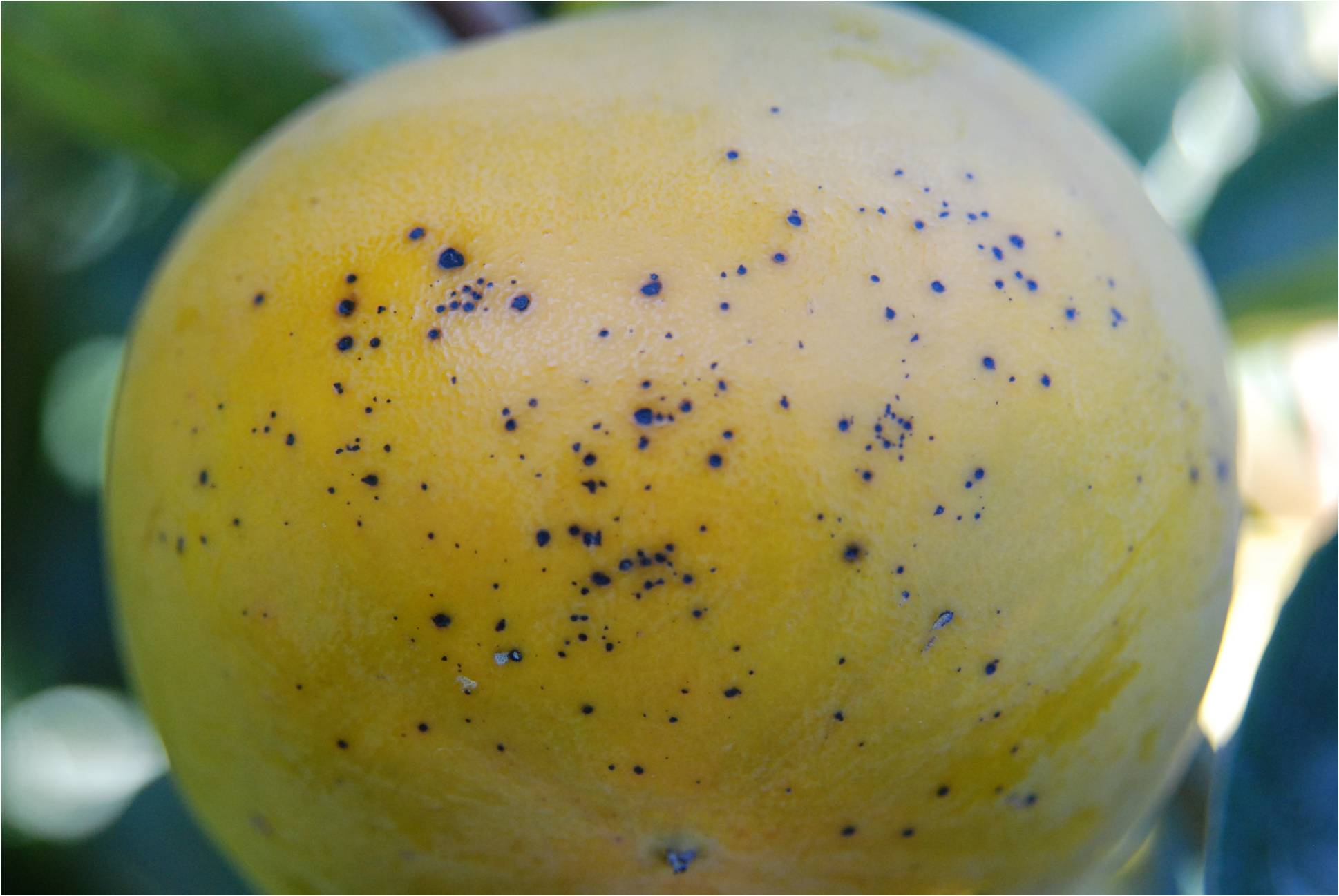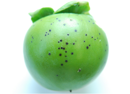 ◦ 고온기에 주춤하다가 8월 하순 이후 다시 나타나는데, 다 자란 과실에 감염하게 되면 과실에 흑색 병반이 생기고 온전한 과실에 비해 일찍 붉게 연화되며 대부분 낙과됨
