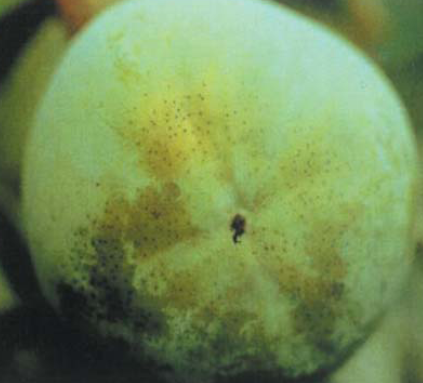 ◦ 작은 흑점들 여러 개가 모여서 크게 형성되면 과실 표면의 왁스 물질이 소실되어 병반을 만들거나 상품 가치를 떨어뜨림