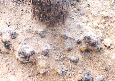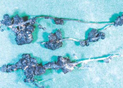 ◦ 잔뿌리에는 구형의 작은 혹이 생기며, 굵은 뿌리에는 부정형의 혹(암종)이 생김