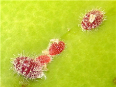 ◦ 유충은 붉은색을 띠고 등쪽에 털이 무성하며 흰색의 밀납질 가루로 덮여지면서 성충이 됨