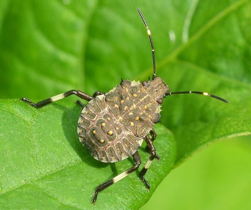 ◦ 약충은 몸길이 14mm내외로 둥근 모양으로 납작하며, 1령 약충인 경우에는 적갈색으로 보이나 그 이후는 대체적으로 흑색에 가까움