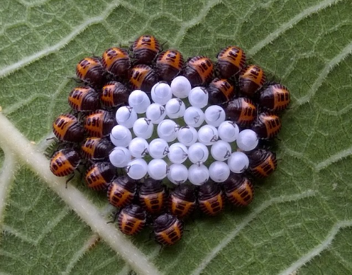 ◦ 월동 성충은 5월 하순부터 활동하기 시작하고 6월 상순에 20~30개의 알을 무더기로 낳으며, 부화한 약충은 집단생활을 하고 2령 약충 이후로 분산함