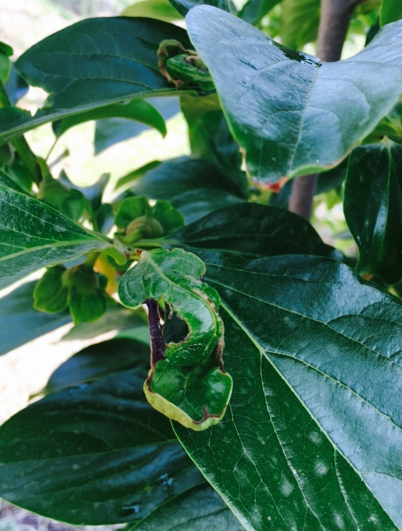 ◦ 방제는 4월 중하순경 감나무 끝눈이 10~15mm 정도 돋아나올 때 노린재 전문약제 살포