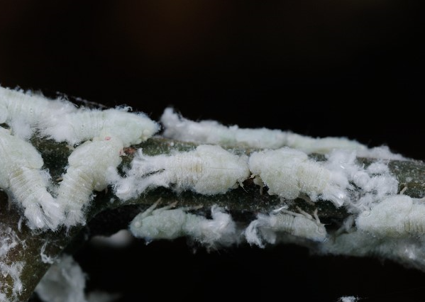 ◦ 약충은 몸길이가 약 5mm로 몸 색깔은 유백색이지만 하얀 솜과 같은 왁스 물질로 덮여 있음
