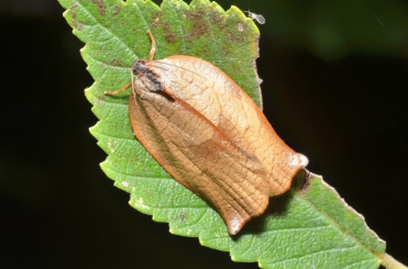 ◦ 성충은 몸길이는 10~12mm 정도이고 몸과 앞날개는 회갈색이며, 뒷날개는 황색을 띰