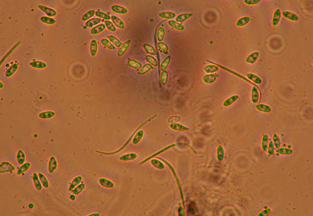 ◦ 병포자는 두 가지 형태, 알파(α)포자는 무색, 단세포, 크기 5~9×2~4㎛, 베타(β)포자는 무색, 단세포, 실모양, 크기 20~30×0.7~1.5㎛임