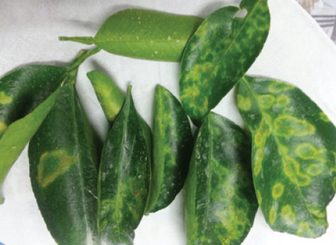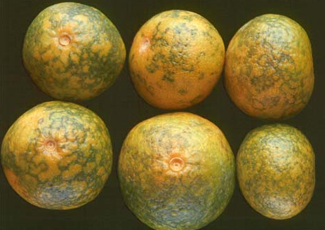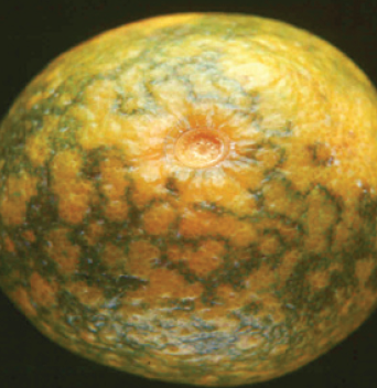 ◦ 병에 걸린 과실은 딱딱해지고 얼룩무늬반점과 담백화 현상 때문에 상품화 되지 못함