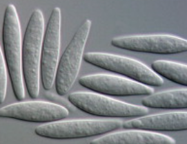 ◦ 자낭균에 속하며, 자낭각은 크기 210~320×130~320㎛, 자낭은 2중막, 곤봉형, 크기 80~140×13~26㎛, 자낭포자는 타원형 또는 장타원형, 크기 16~30×6~9.6㎛임