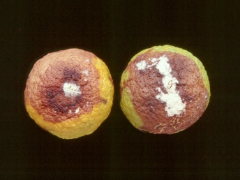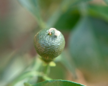 ◦ 초기에는 배꼽 부위가 노랗게 변하기 시작하고 점차 썩어 들어가기 시작하면서 낙과됨