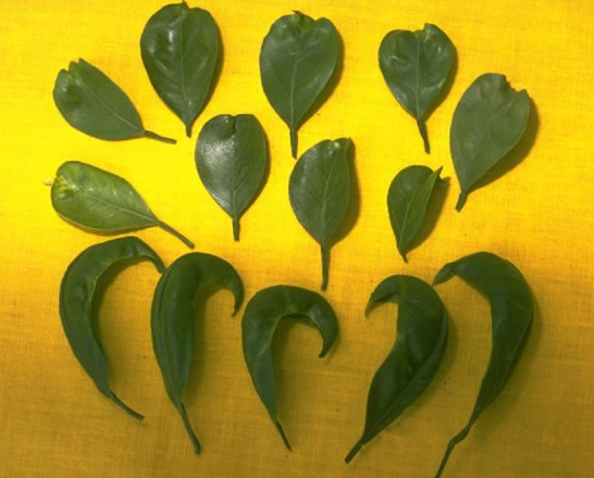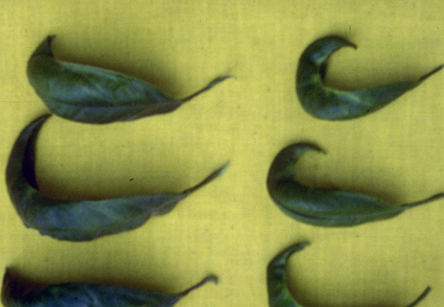 ◦ 이들 증상들은 주야간 온도차가 심할 경우 발생하는 기형잎, 제초제 피해에 의한 기형잎 등과도 매우 유사함