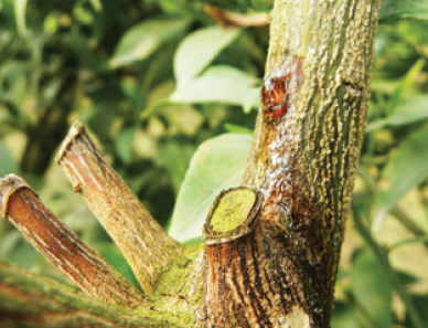 ◦ 병든 부위는 가급적 빨리 죽은 조직을 칼로 완전히 도려내고 적용약제(톱신페스트)를 발라 주는 것이 좋으며, 고온기에 전정할 경우 전정 부위로 전염될 수 있으므로 상처 난 곳에는 반드시 톱신페스트를 발라줌