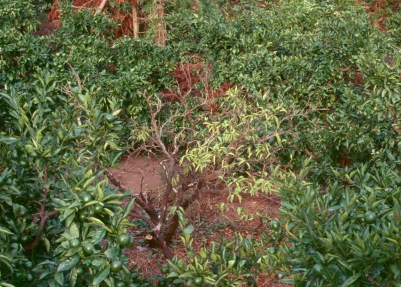 ◦ 탱자나무를 대목으로 사용한 감귤에서 주로 발생되며, 지제부 또는 뿌리의 병해로 급작스럽게 나무가 고사함