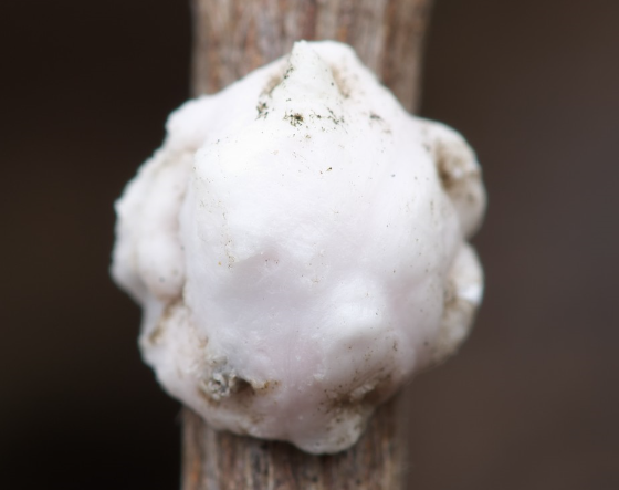 ◦ 암컷 성충은 약 8mm의 회백색 납질 깍지로 되어 있고 둘레애 8개, 중앙에 1개의 뿔모양의 돌기가 있음