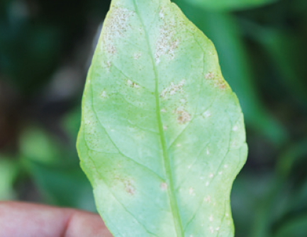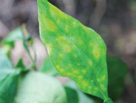 ◦ 하우스 밀감에서는 개화기에 총채벌레가 발생은 하지만 주로 착색기에 피해를 받고 수관 하부 보다는 중앙부 이상의 과실에서 피해가 많은 경향이며, 피해 과실은 초기에 가해 받은 부분이 구름 모양의 백색 반점이 형성되고 시간이 경과함에 따라 피해 부위가 갈변되어 상품가치를 떨어뜨림