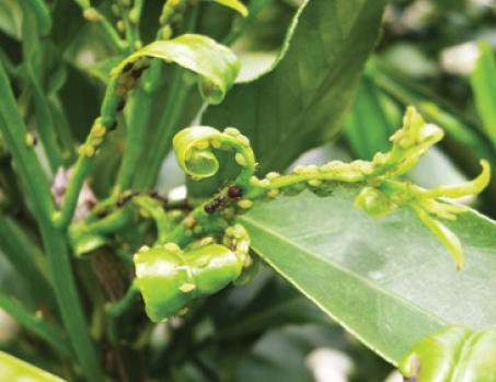 ◦ 잎 또는 가지가 피해를 받으면 잎이 말리거나 기형이 되어 생육이 불량해짐