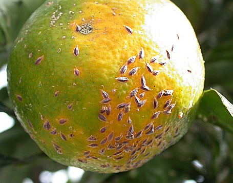 ◦ 과실에 기생하면 기생부위는 착색이 덜 되고 방제를 소홀히 할 경우 비대가 나빠져 상품가치를 떨어뜨림