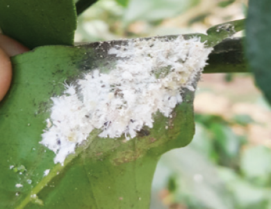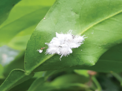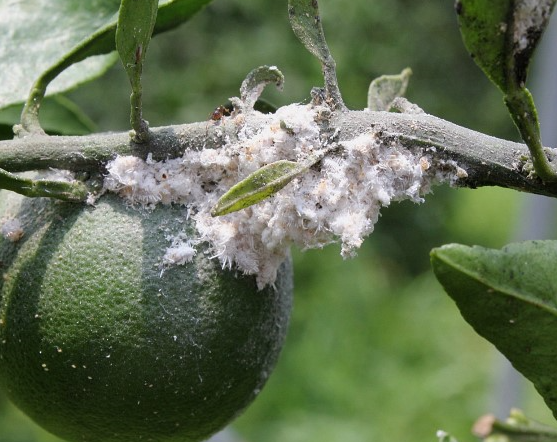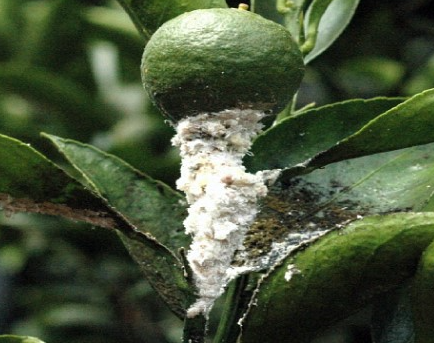 ◦ 잎과 가지, 과실에 군집을 형성하여 기생하며, 피해를 받으면 수세가 약해지고 잎은 누렇게 말려서 오그라들며, 배설물에 의한 그을음 증상이 심하게 발생하여 과실의 상품가치를 떨어뜨림