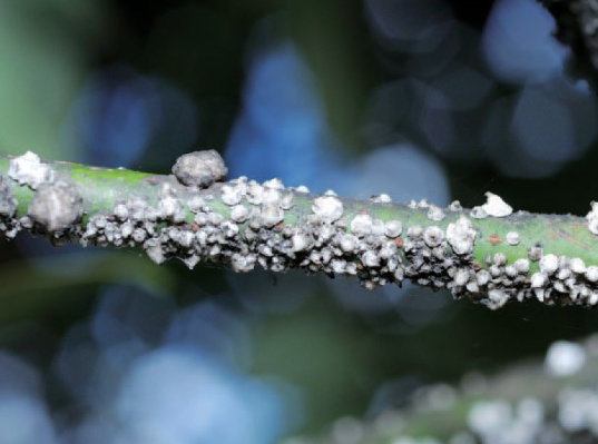◦ 가지에 기생하면서 흡즙하여 가해하는데, 배설된 감로로 인해 그을음병이 발생하여 생육을 저해함
