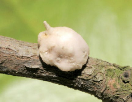 ◦ 성충의 크기는 약 6~8mm이며, 회백색 납질의 깍지로 덮여 있고 둘레에 8개, 중앙에 1개의 돌기가 있음