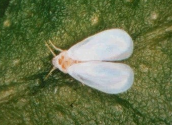 ◦ 성충의 몸길이는 약 1.2mm 정도로 흰 비늘가루로 덮여 있는 연한 노란색 몸에 불투명한 흰색 날개가 있음