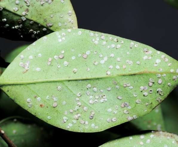 ◦ 잎의 뒷면에서 즙액을 흡즙하는데, 주로 신엽을 가해하고 분비물로 인해 그을음병이 심하게 발생하여 상품가치를 떨어뜨릴 뿐만 아니라 동화작용을 저하시켜 수세를 약화시킴