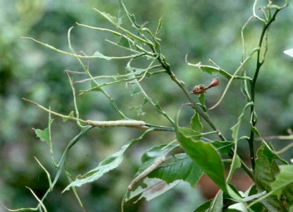 ◦ 유충이 잎과 과실을 식해하여 피해를 줌