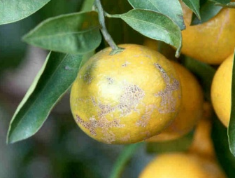 ◦ 과실은 구멍을 내면서 파먹지 않고 표면을 갉아 먹는데, 피해 초기에는 상처 부위가 옅은 황색으로 보이지만 시간이 경과되면 흑갈색의 딱지가 형성됨
