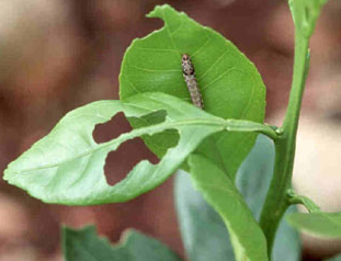 ◦ 유충이 주로 잎을 식해하여 피해를 주며, 노지에서는 거의 발생하지 않고 하우스 밀감에서 발생하여 피해를 줌