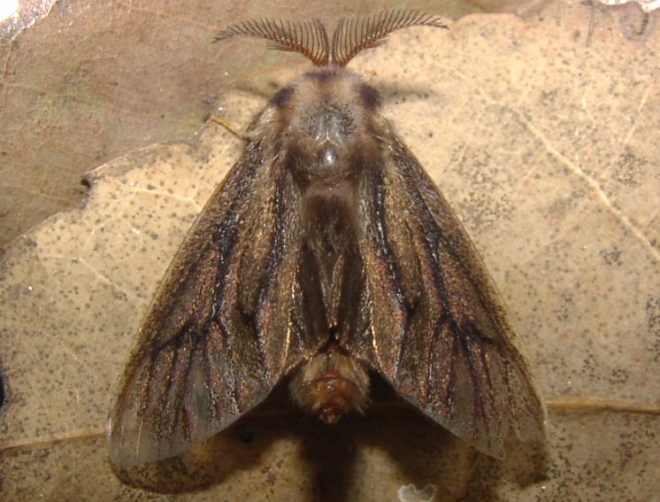 ◦ 수컷 성충의 날개편길이는 20~27mm로 흑갈색이며, 암컷은 20mm 내외로 다리와 날개가 없는 방추형의 구더기 모양이고 몸은 유백색임