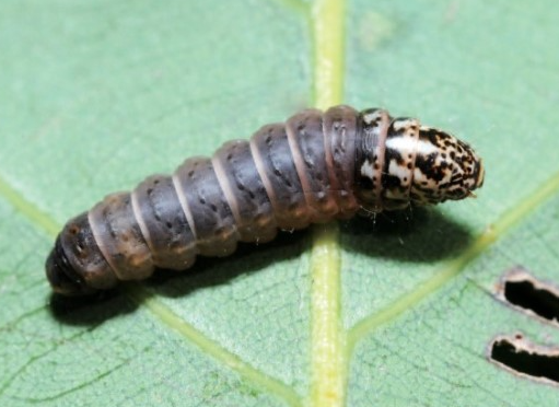 ◦ 노숙유충은 수컷이 15~18mm, 암컷이 20~25mm의 황백색이며, 머리에는 흑갈색의 무늬가 있음