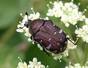 ◦ 개화기에 성충이 꽃에 모여 꽃잎과 암술을 먹고 자방에 상처를 냄으로써 과실의 표면에 긁힌 자국을 남겨 피해를 줌